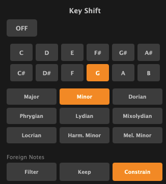 - Mode 'Constrain': Snap out-of-scale notes to the nearest scale degree