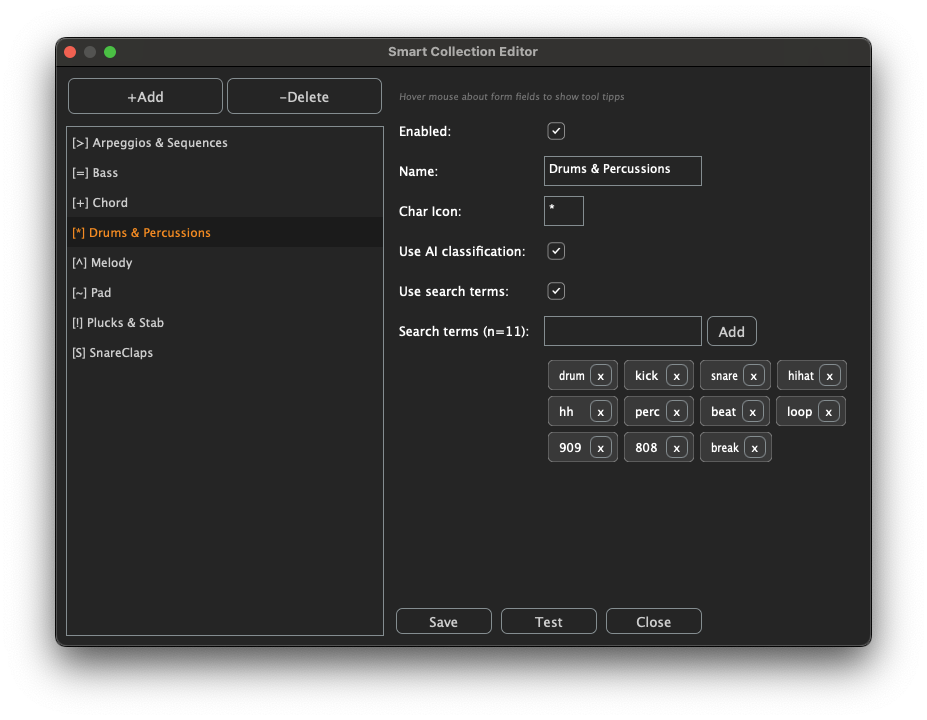 - Smart Collections: Filter by key, tempo, rating, instrument/pattern type